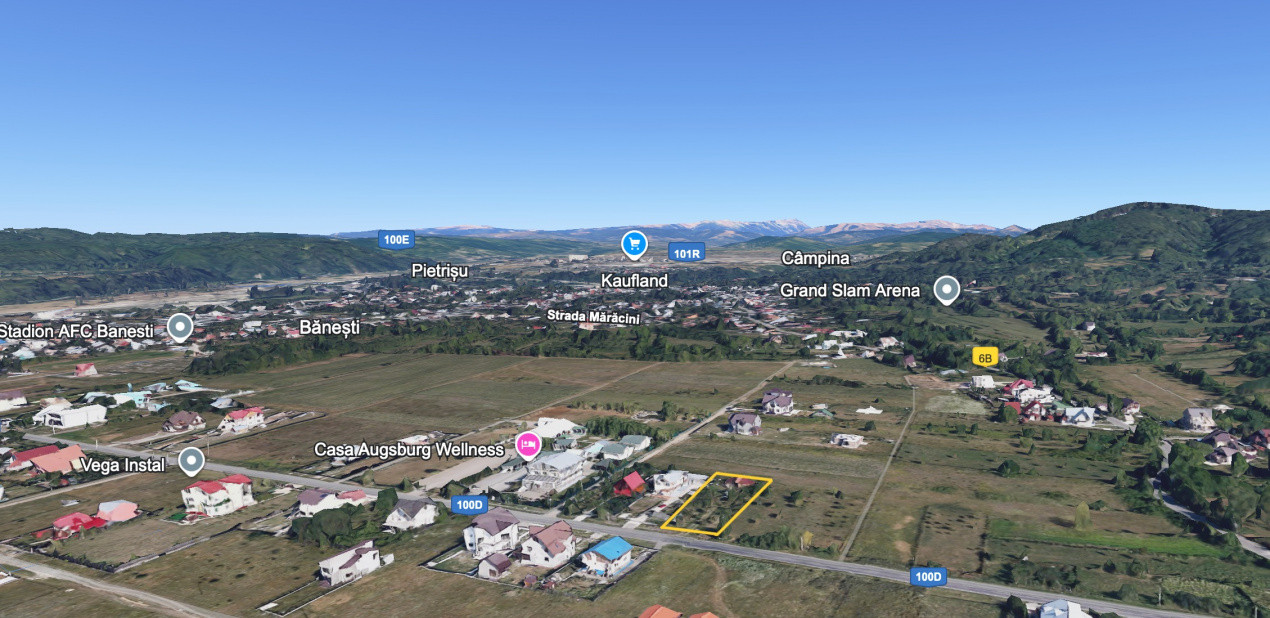 Teren intravilan excelent poziționat, în Bănești, județul Prahova, chiar pe drumul județean, lângă Casa Augsburg, cu acces rapid către Câmpina.