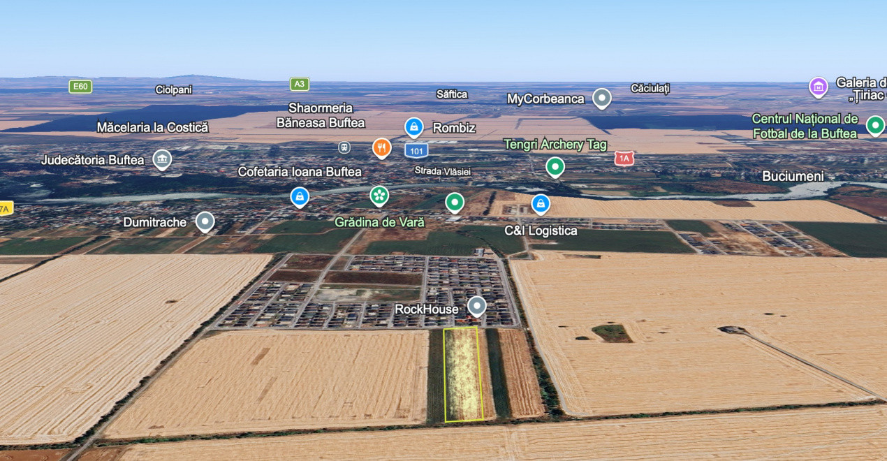 Intravilan | 13124 mp | front 44,5 m | Toate utilitățile | Buftea - Tineretului